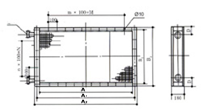 凈通風截面積m2 | 表面管數 | 排數 | 連接管DN(in) | 尺寸(mm) | ||||||||||